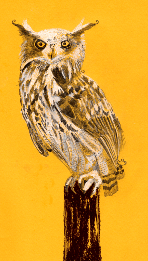Comme vous avez pu le voir, je suis un hiboux ! Mon nom c’est Grand Duc. Les chats ont très peur de moi. C’est peut-être parce que je suis très grand.