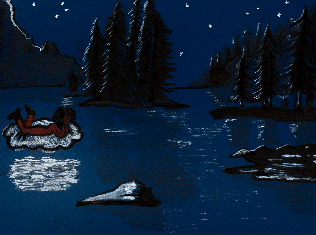 Peu importe qui est la meilleure, la plus grande ou bien la plus petite. Pour traverser la rivière, c’est en équipe, usant des talents de chacune qu’elles construisirent le plus solide et maniable des radeaux. Sur leur embarcation, à l’aide de longues branches, elle dérivèrent jusqu’à l’autre rive.
